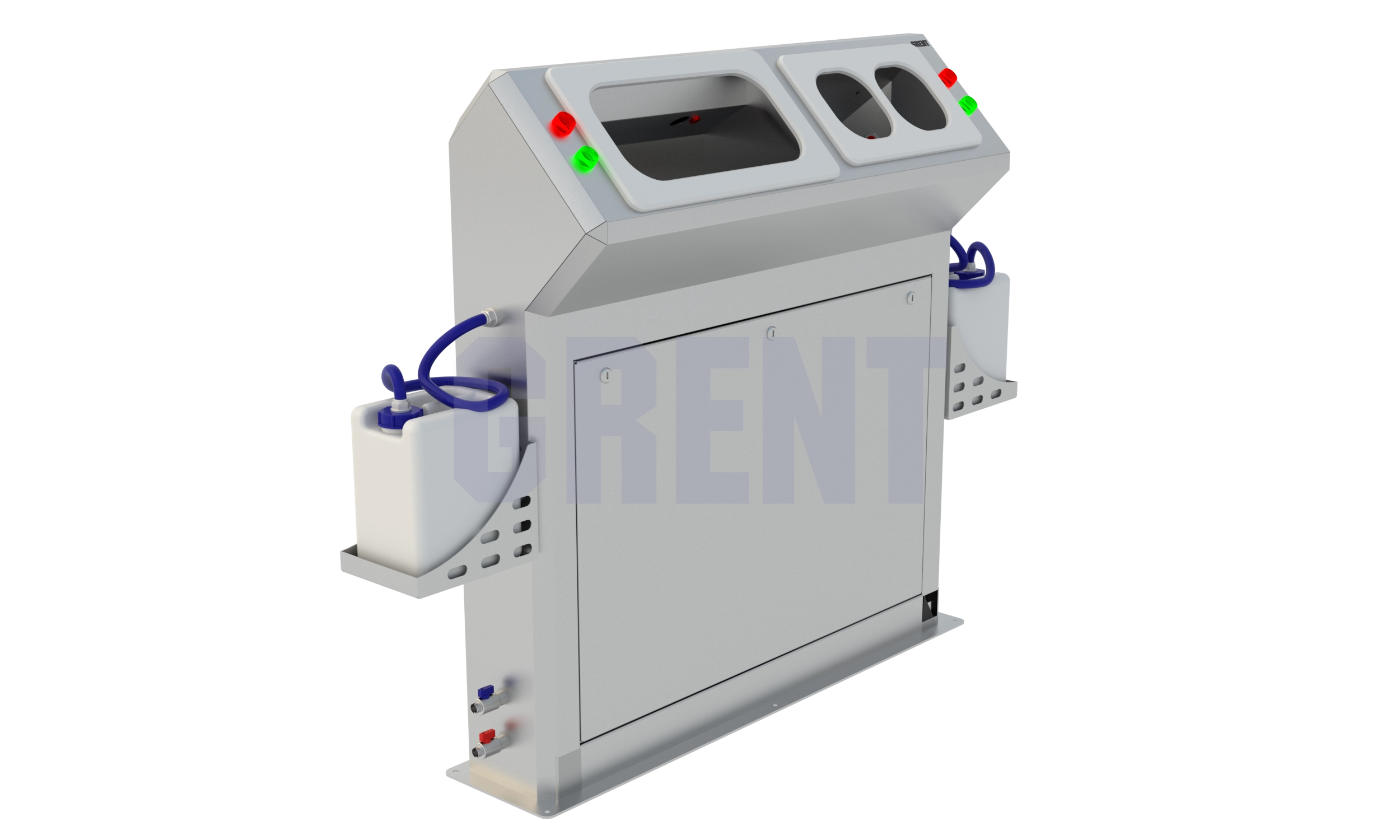 Станция гигиены GRENT 018 R предназначена для мытья и дезинфекции кистей рук при входе в чистые помещения на производстве.