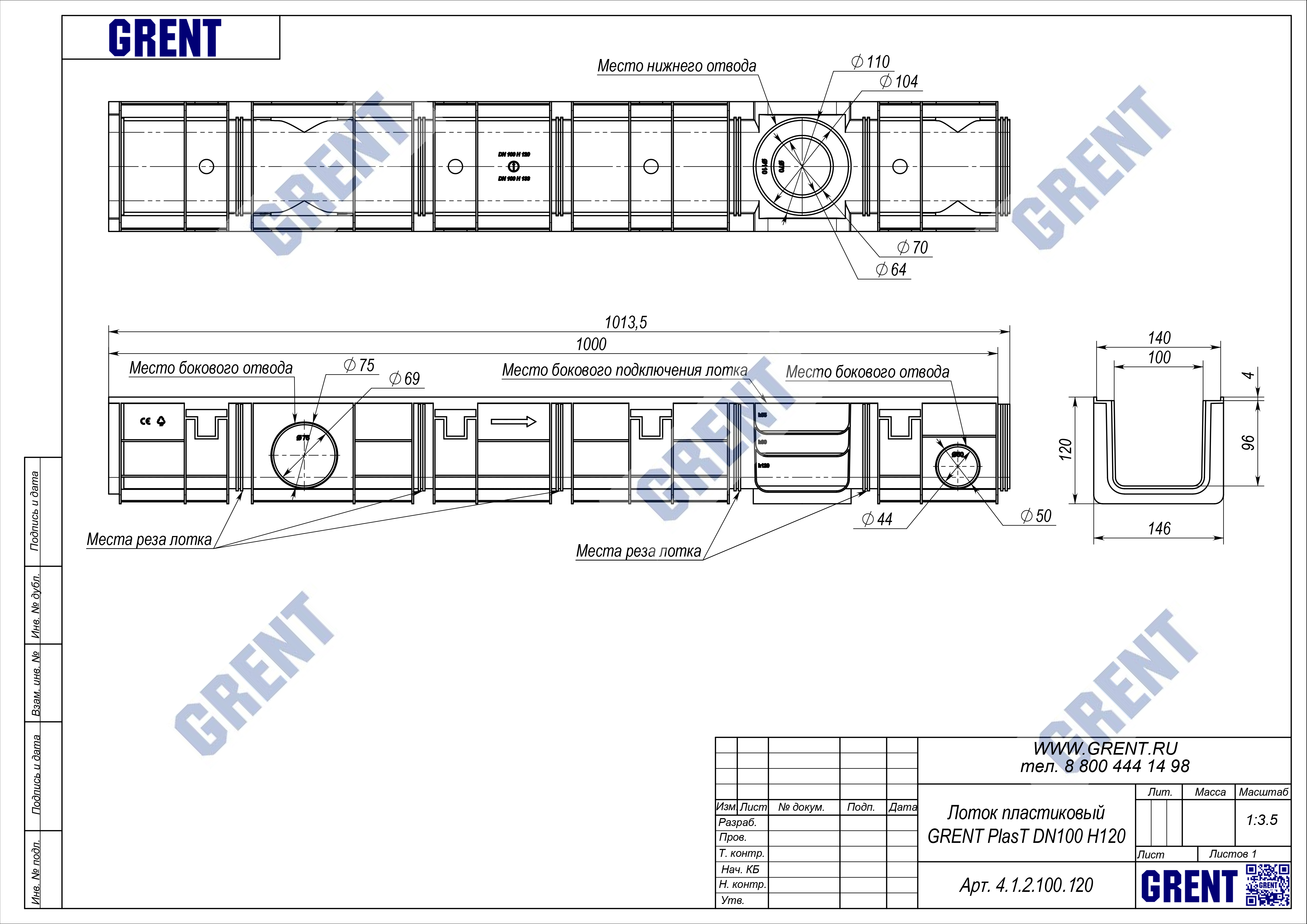 Лоток серии GRENT PlasT 100 H120